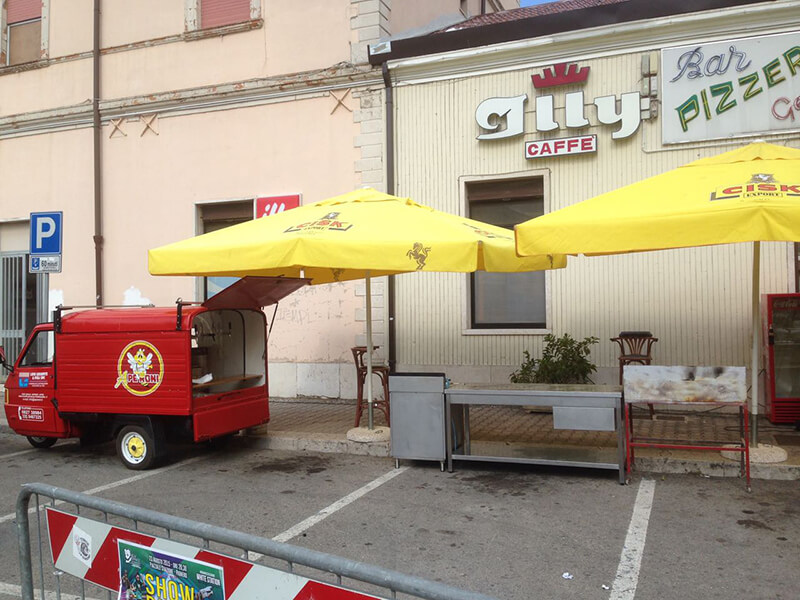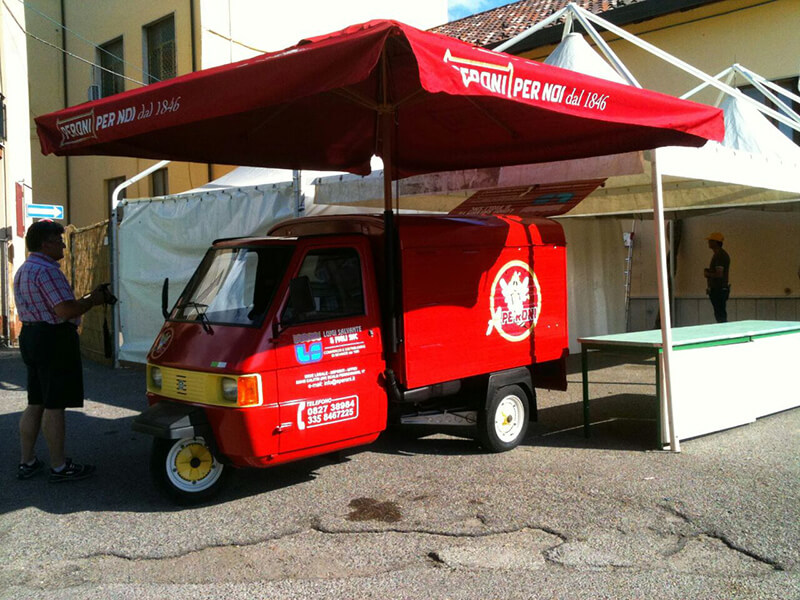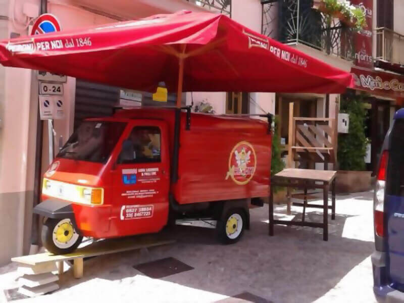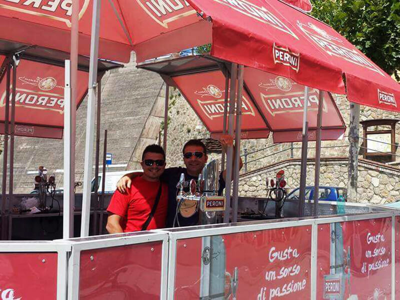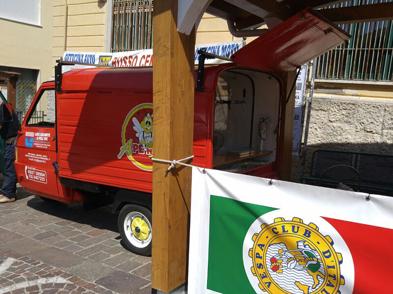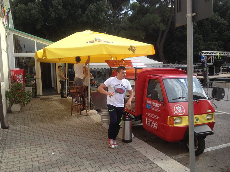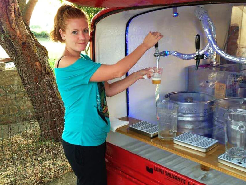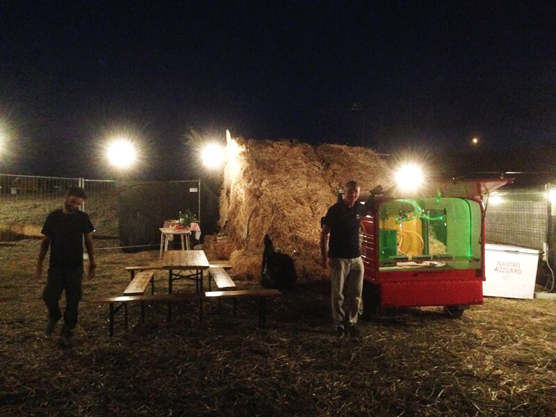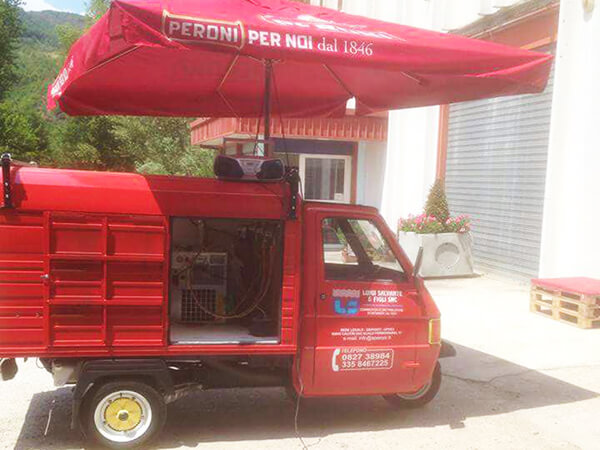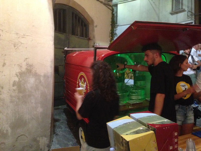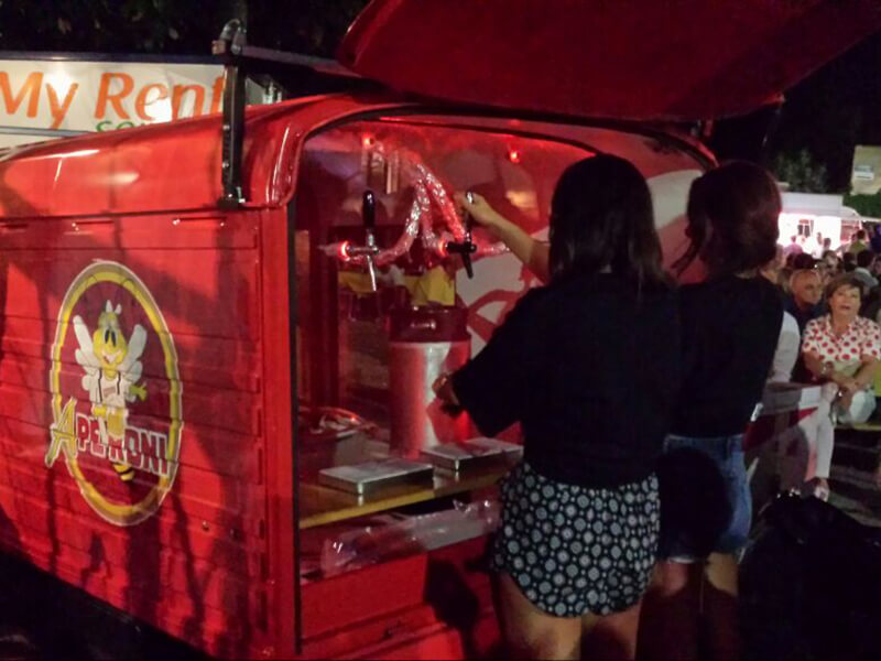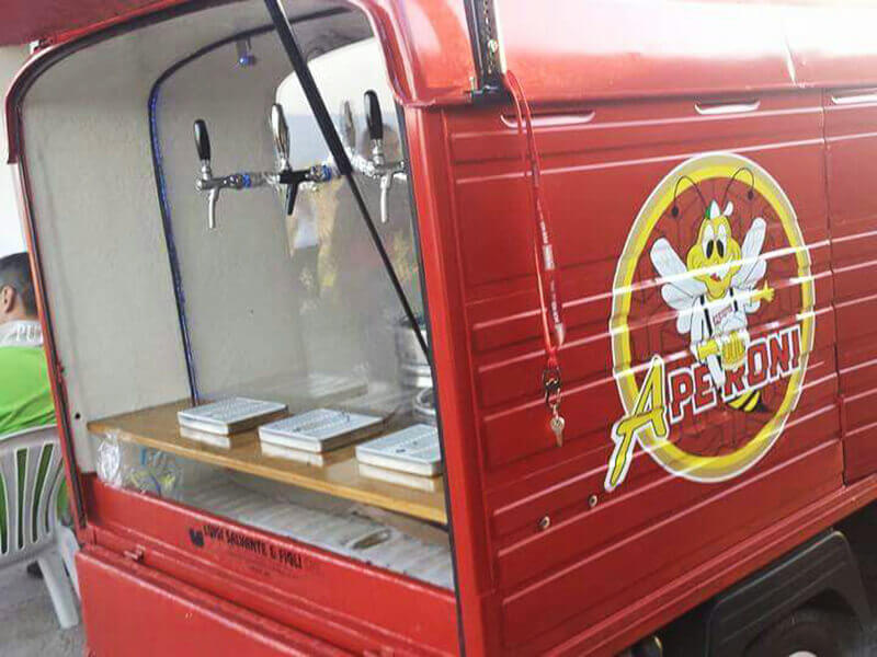 Tutto questo grazie al nostro Ape Piaggio realizzato adhoc e dotato di un impianto di spillatura interno, autorefrigerante.